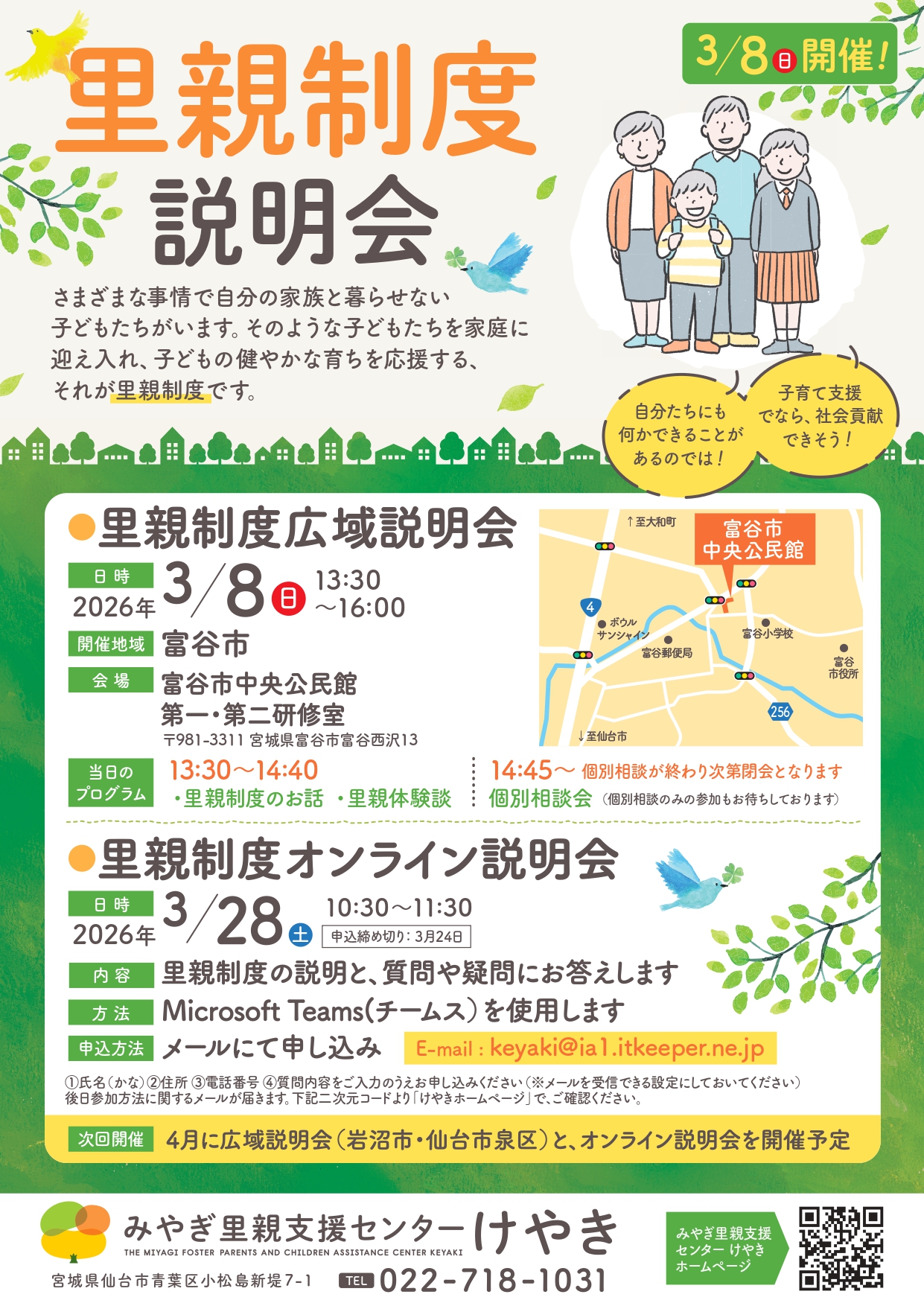 里親制度説明会のご案内(3/8富谷市・3/28オンライン)