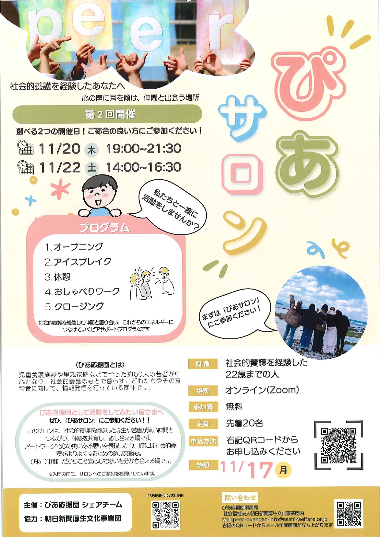 社会的養護を経験した若者たちによる「ぴあ活動」のご案内