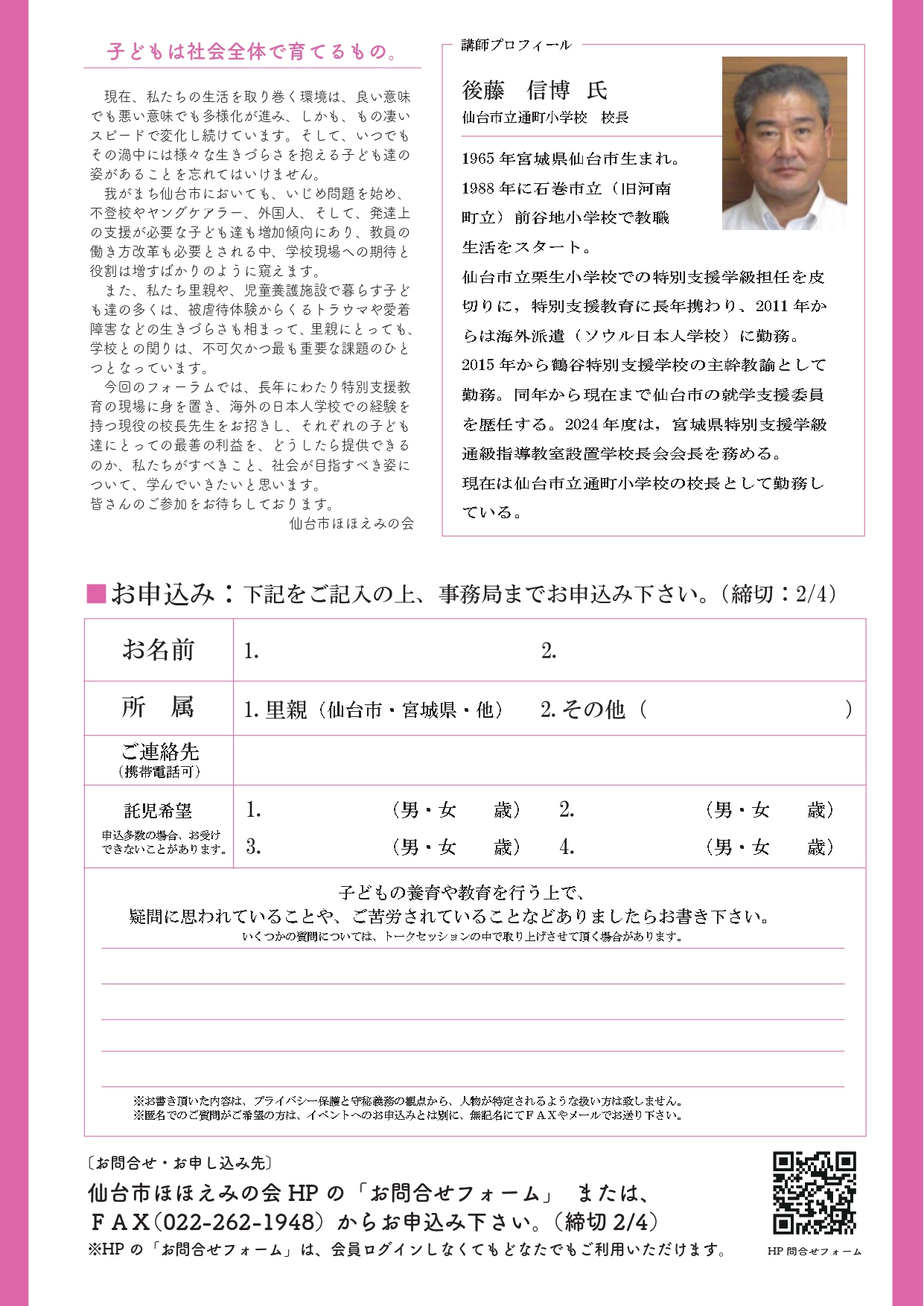 仙台市ほほえみの会公開フォーラムのご案内(2/7)