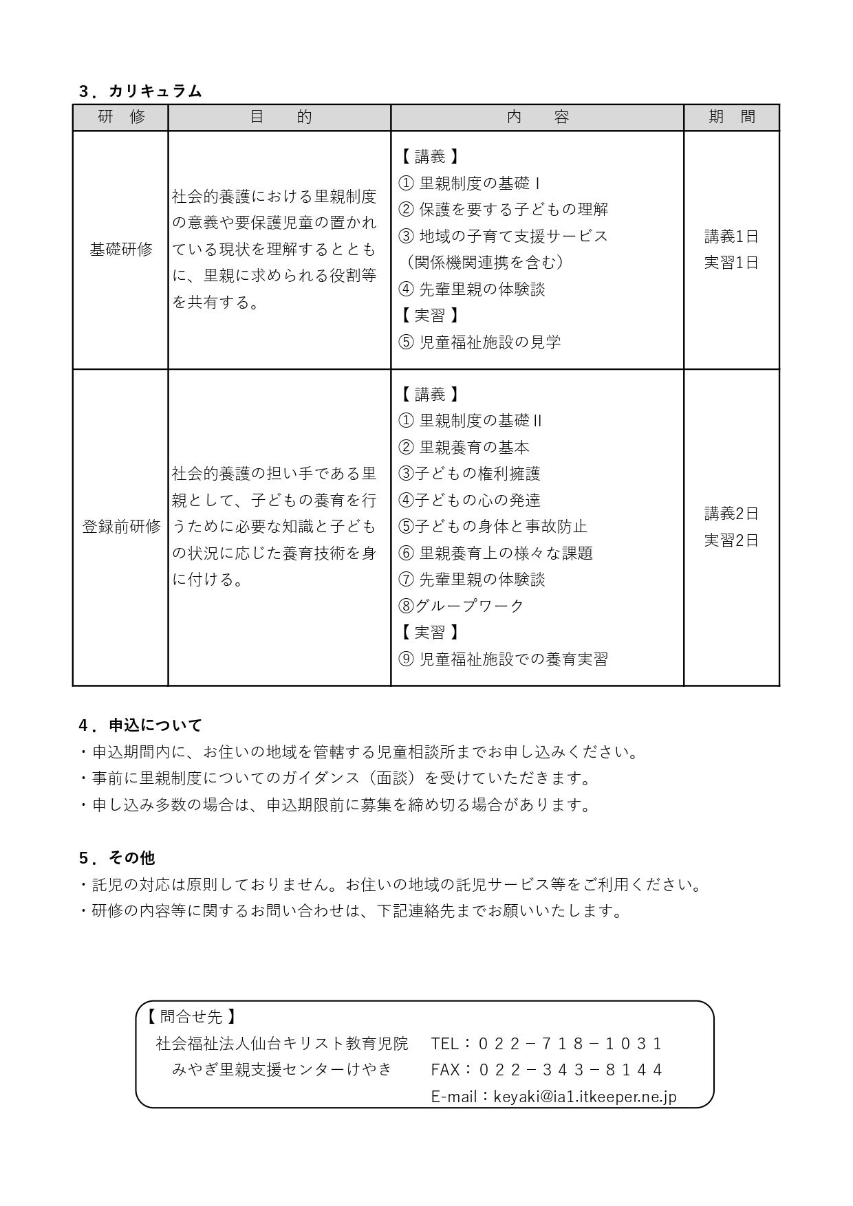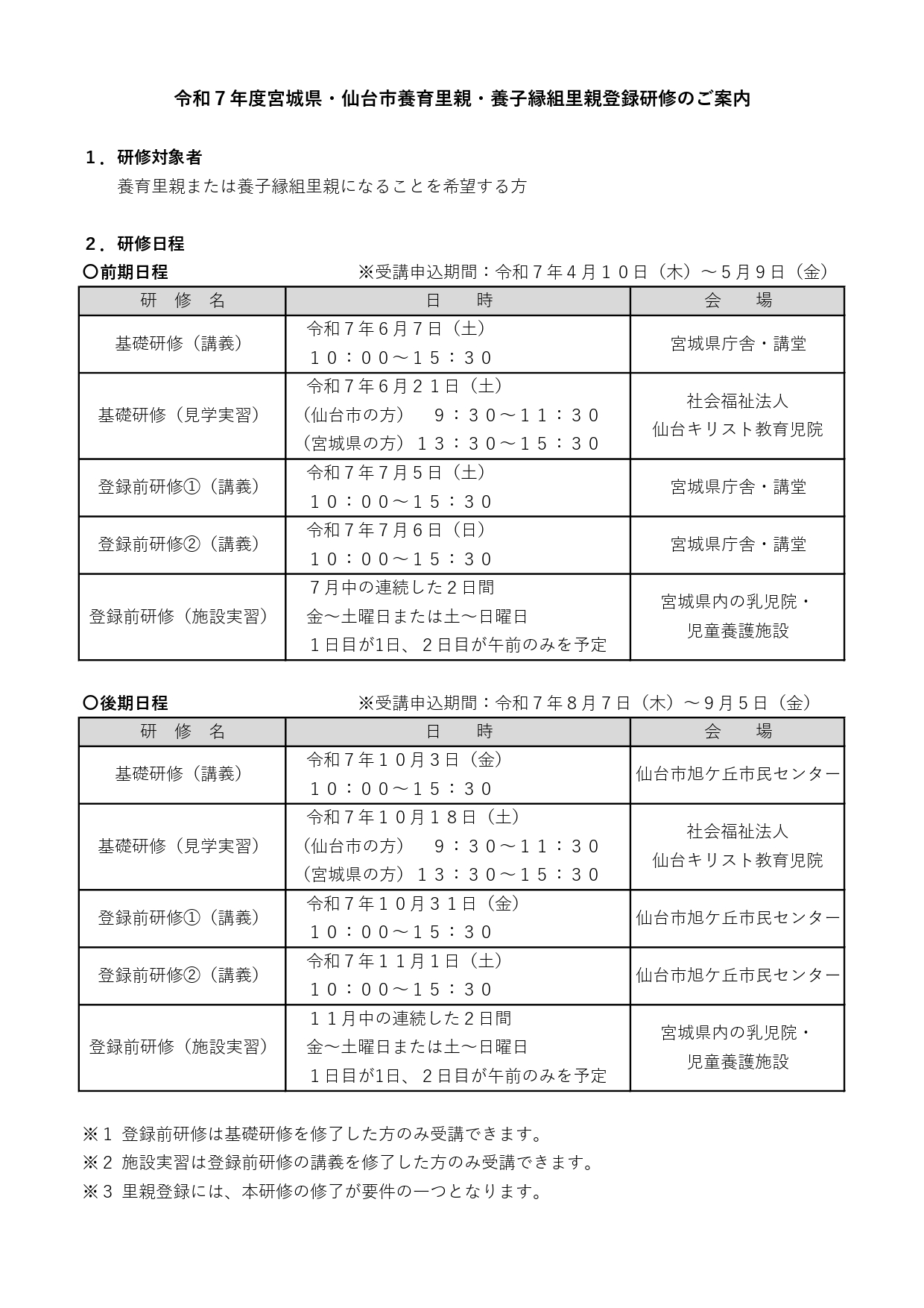 令和7年度 宮城県・仙台市里親登録研修年間実施予定について