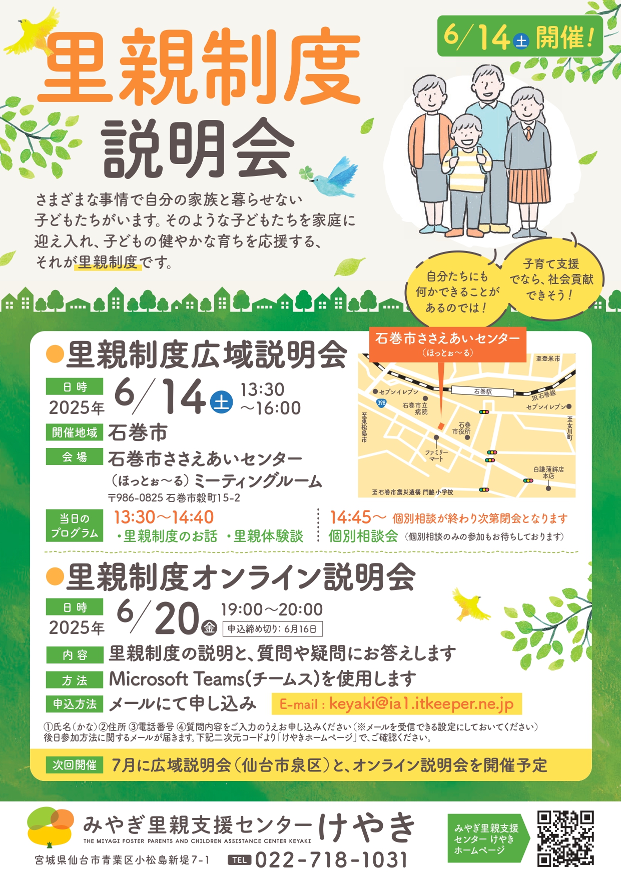 2025年6月 里親制度広域説明会・オンライン説明会開催のお知らせ