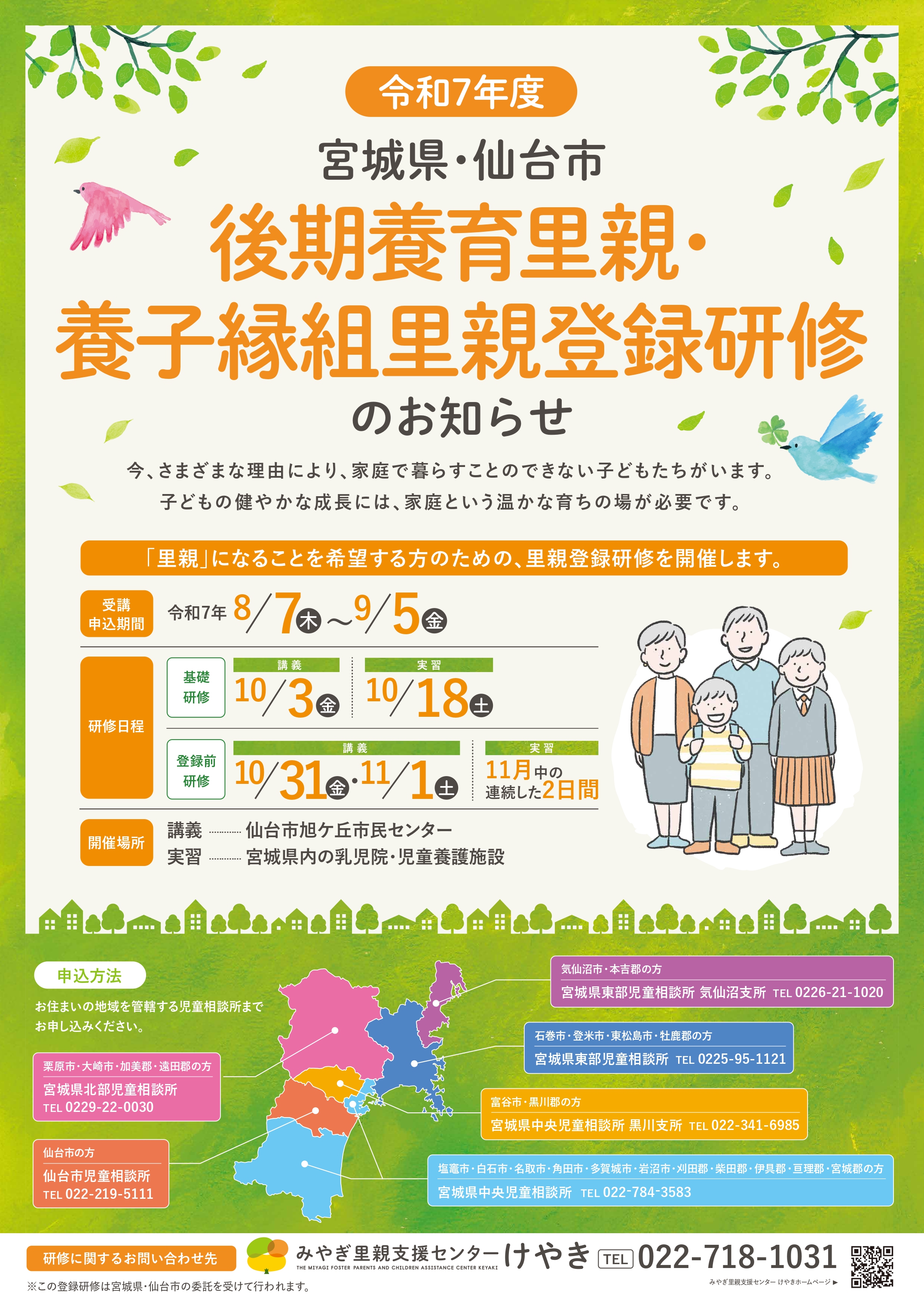 令和7年度 宮城県・仙台市後期養育里親・養子縁組里親登録研修のお知らせ