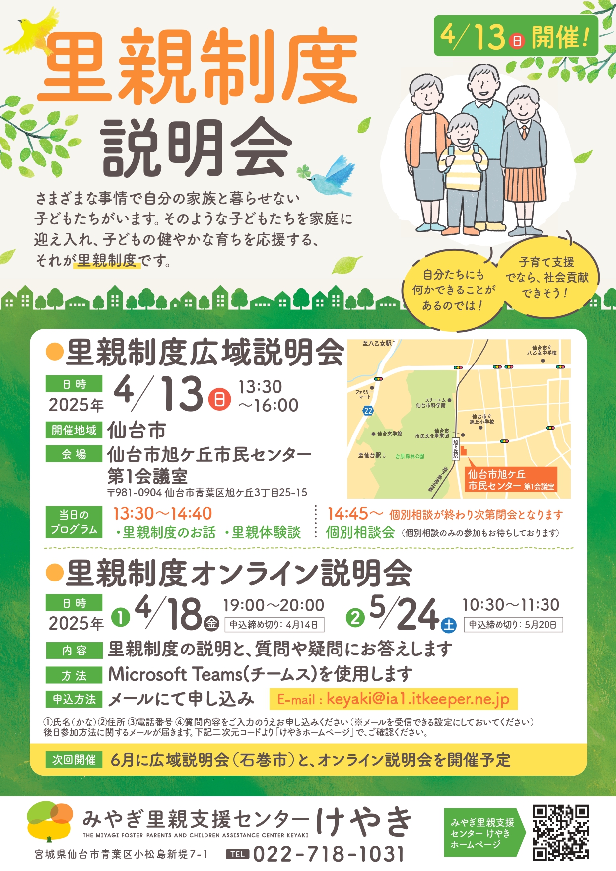 2025年4月・5月 里親制度広域説明会・オンライン説明会開催のお知らせ